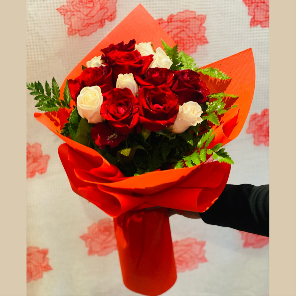 A breathtaking bouquet of red and white roses, symbolizing deep love and purity. Wrapped in elegant red paper, this bouquet is the perfect way to express your feelings on Valentine's Day or any special occasion. Surprise your loved one with this romantic and timeless gift! 🚚 FREE delivery in Bahrain 🇧🇭 📏 Size: Medium 🎁 Perfect for: Valentine's Day, Anniversaries, Love Declarations