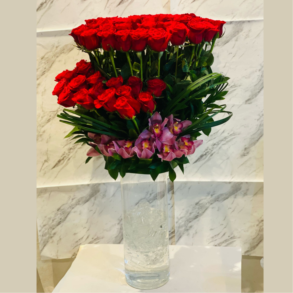 Express your love with this luxurious bouquet of stunning red roses, the timeless symbol of passion, enhanced with exotic orchids for a touch of refined elegance. Gift your loved one an unforgettable moment with this exquisite floral arrangement, perfect for Valentineβs Day. π FREE delivery in Bahrain π§π π Size: Large π Perfect for: Valentine's Day, Anniversaries, Love Declarations